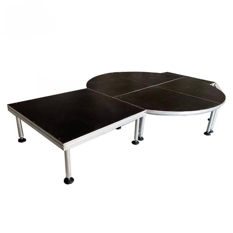 Die mobile Aluminium-Traversenbühne mit Schnellverschluss ist in verschiedenen Standardgrößen erhältlich, darunter 1,20 m x 2,40 m, 1,20 m x 1,20 m und 1 m x 2 m. Darüber hinaus sind Sonderanfertigungen möglich, um den individuellen Anforderungen Ihrer Veranstaltung gerecht zu werden. Auch die Form der Plattform lässt sich anpassen: Zur Auswahl stehen Quadrat, Kreis, Dreieck, Viertel, Rechteck, Oval und unregelmäßige Formen. Diese Flexibilität ermöglicht die Gestaltung einzigartiger und funktionaler Bühnenlayouts.
